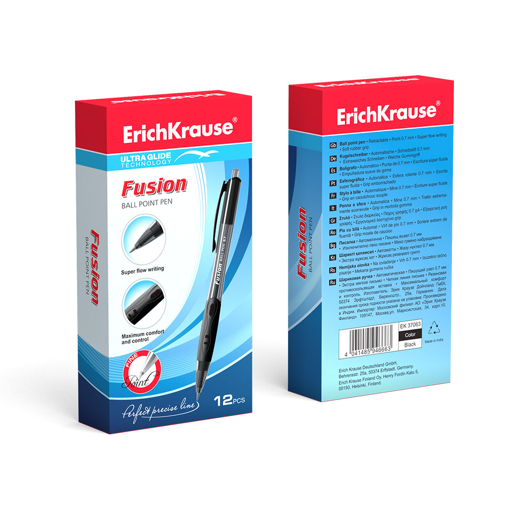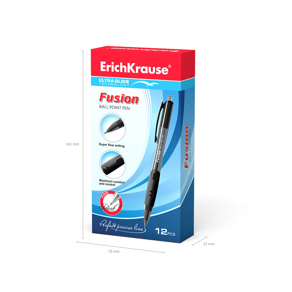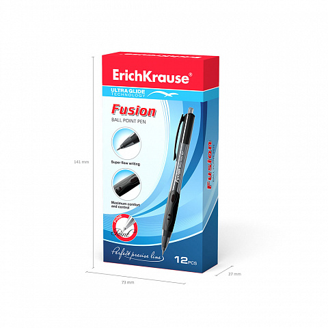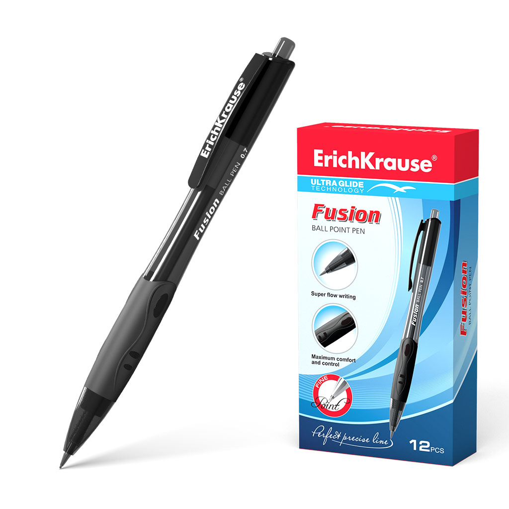 Ручка шариковая автоматическая ErichKrause® Fusion, Ultra Glide Technology, цвет чернил черный (в коробке по 12 шт.) |