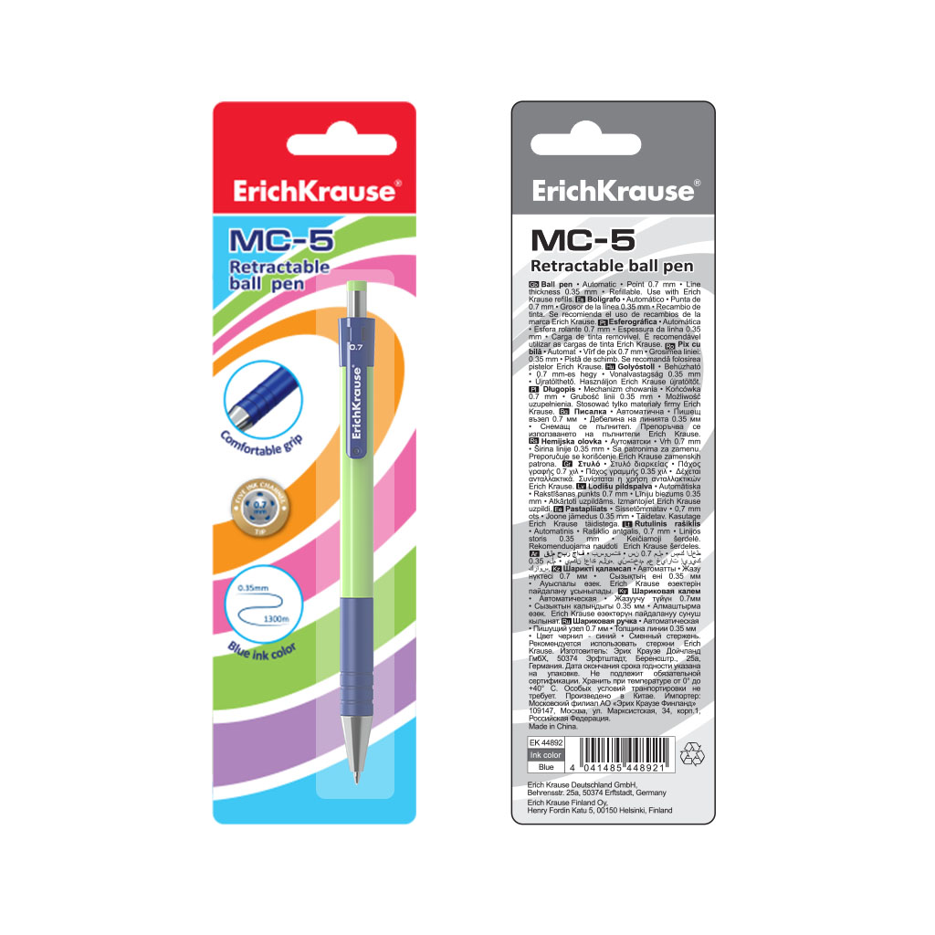 Ручка шариковая автоматическая ErichKrause® MC-5, цвет чернил синий (блистер 1 шт.)