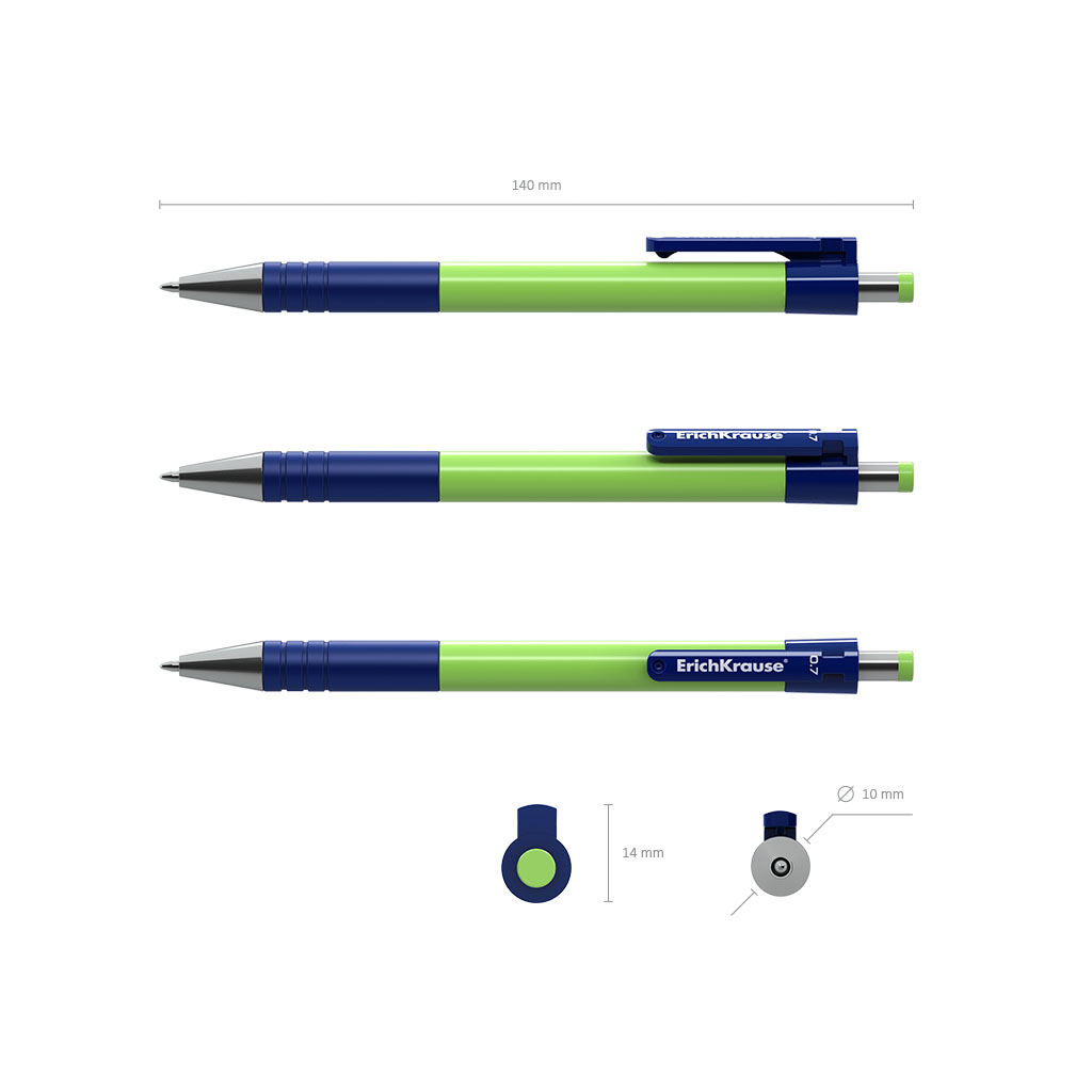 Автоматическая шариковая ручка Matic&Grip с металлизированными элементами, стандартным типом пишущего узла и заменяемым стержнем. Ручка имеет глянцевый круглый корпус ярких неоновых цветов с комфортной профилированной грип-зоной из резины. 5-канальный пишущий узел с диаметром шарика 0.7 мм в сочетании с быстросохнущими чернилами обеспечивает мягкое и быстрое письмо. Длина непрерывной линии составляет 1300 м при толщине 0.35 мм, что является высоким показателем в своей категории. Модель MC-5 - один из бестселлеров в ассортименте автоматических шариковых ручек ErichKrause®. |