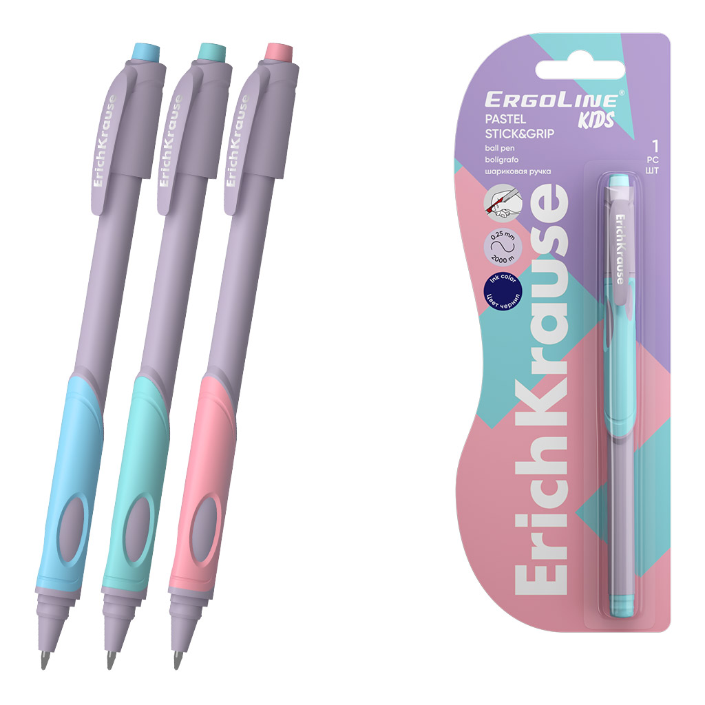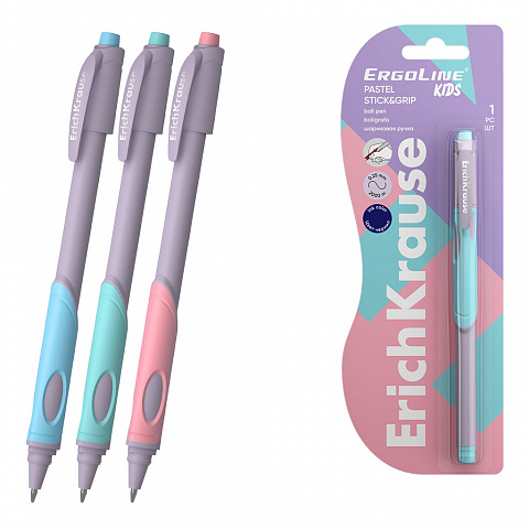 Ручка шариковая ErichKrause ErgoLine® Kids Stick&Grip Pastel 0.5, Super Glide Technology, цвет чернил синий (в блистере по 1 шт.)