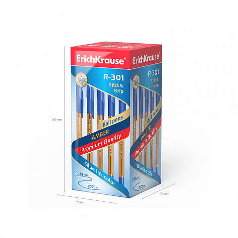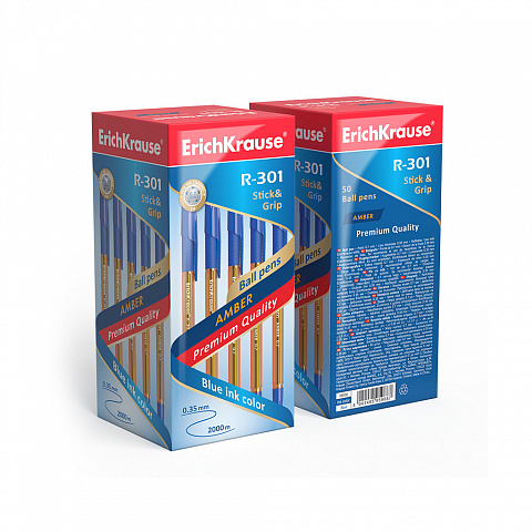 Ручка шариковая ErichKrause R-301 Stick&Grip Amber 0.7, цвет чернил синий (в коробке по 50 шт.) |