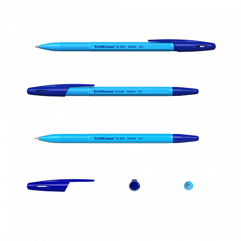 Ручка шариковая ErichKrause R-301 Stick Neon 1.0, цвет чернил синий (в коробке по 50 шт.) |