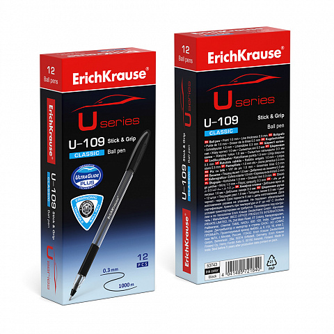 Ручка шариковая ErichKrause U-109 Stick&Grip Classic 1.0, Ultra Glide Technology, цвет чернил черный (в коробке по 12 шт.) |