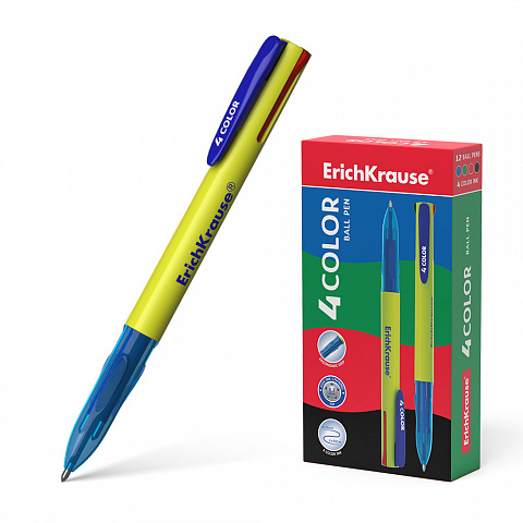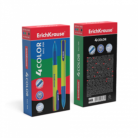 Ручка шариковая автоматическая ErichKrause® 4 COLOR, цвет чернил: синий, черный, красный, зеленый (в коробке по 12 шт.) |