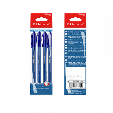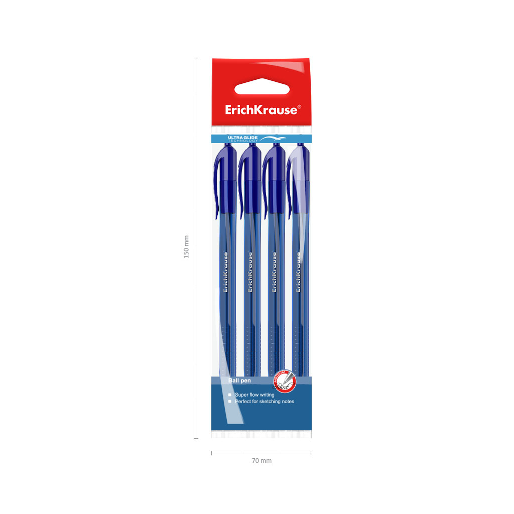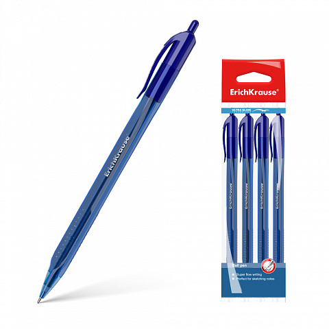 Ручка шариковая автоматическая ErichKrause® U-28, Ultra Glide Technology, цвет чернил синий (в пакете по 4 шт.)