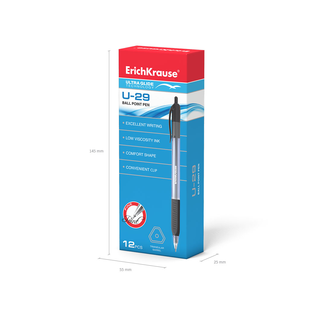 Ручка шариковая автоматическая ErichKrause® U-29, Ultra Glide Technology, цвет чернил черный (в коробке по 12 шт.) |