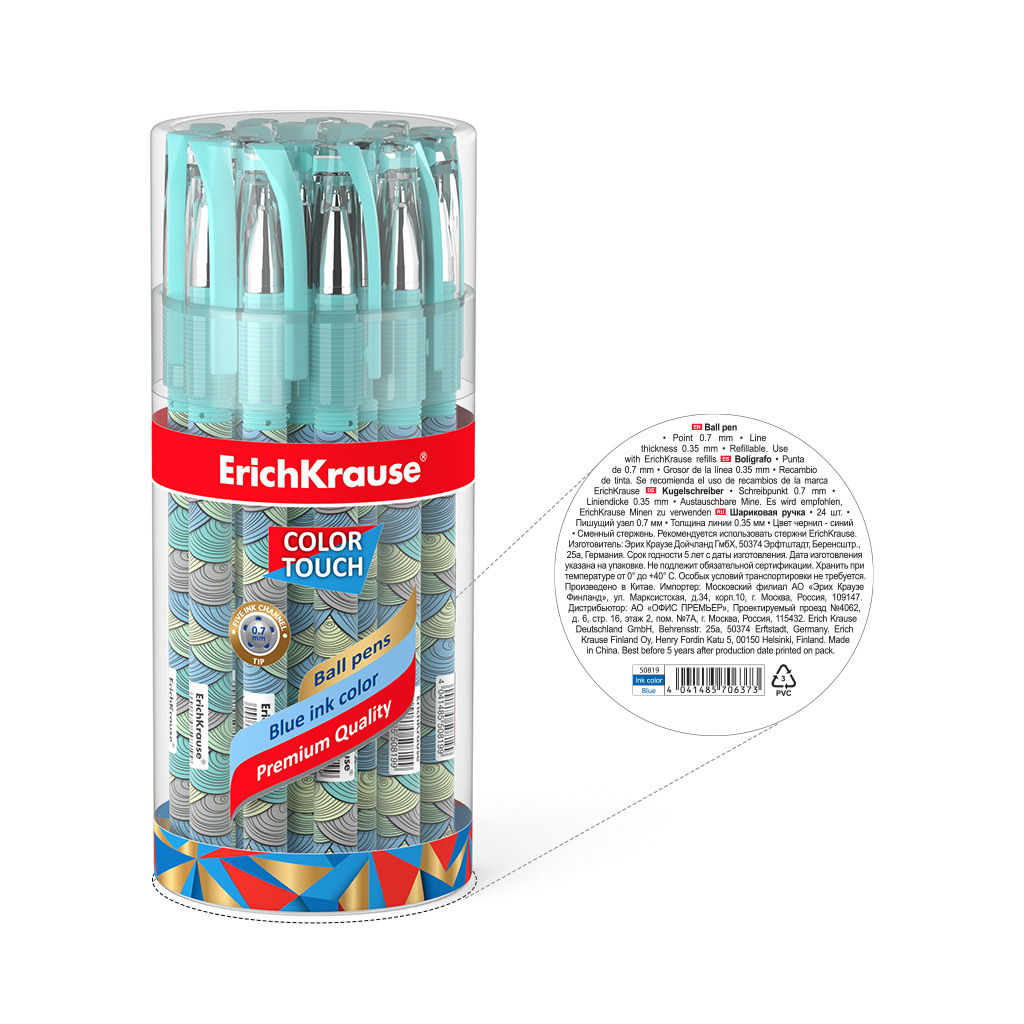 Ручка шариковая ErichKrause ColorTouch Stick Emerald Wave 0.7, цвет чернил синий (в тубусе по 24 шт.) |