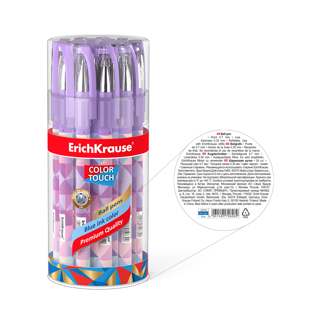Ручка шариковая ErichKrause ColorTouch Stick Magic Rhombs 0.7, цвет чернил синий (в тубусе по 24 шт.) |