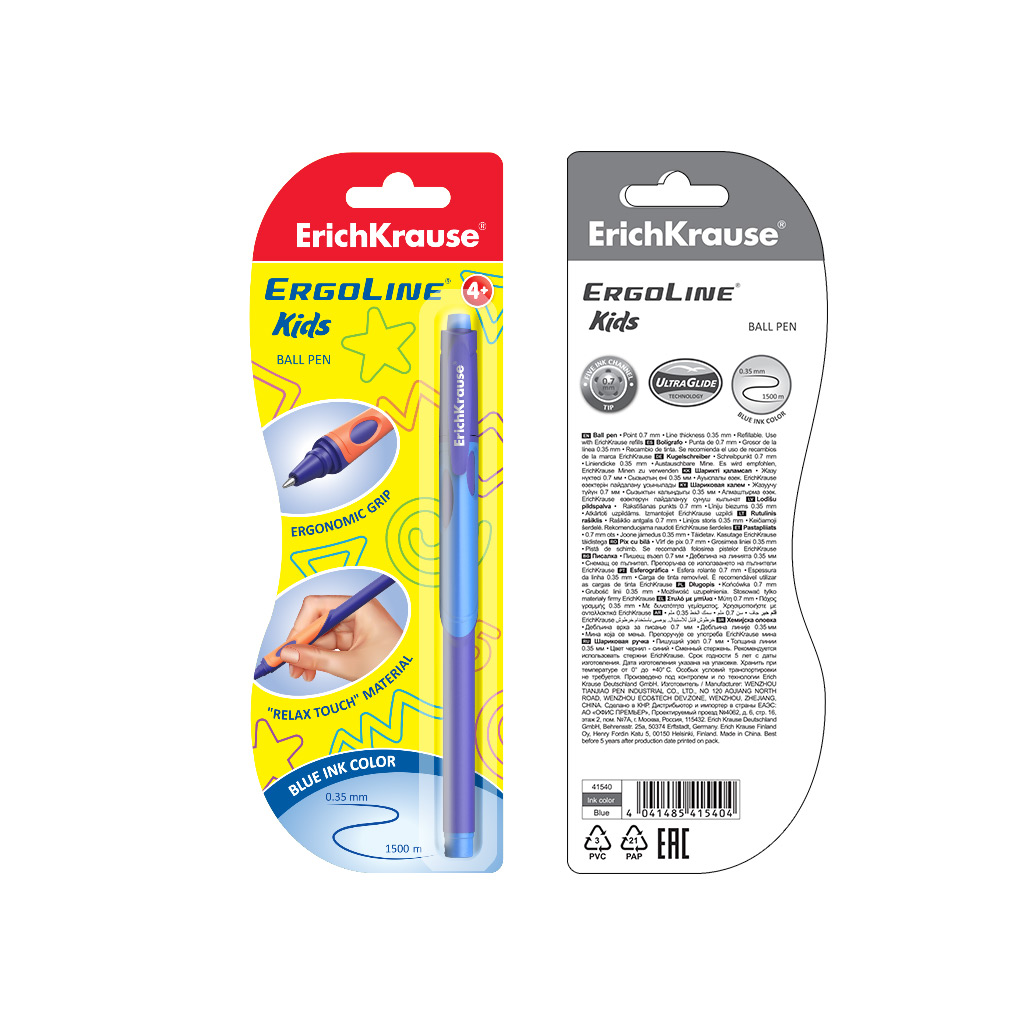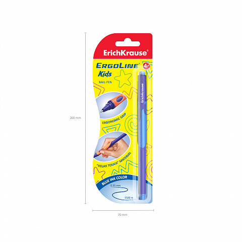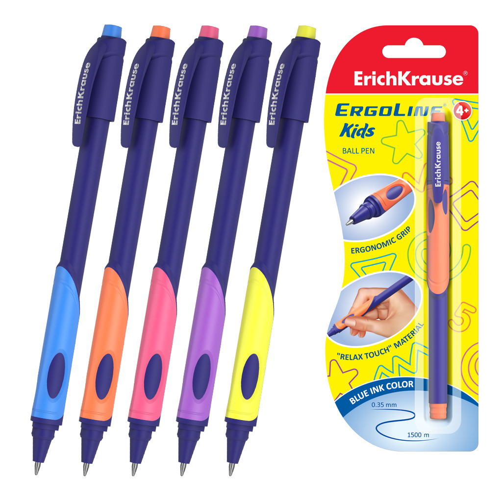 Ручка шариковая ErichKrause ErgoLine® Kids Stick&Grip Neon 0.7, Super Glide Technology, цвет чернил синий (в блистере по 1 шт.) |