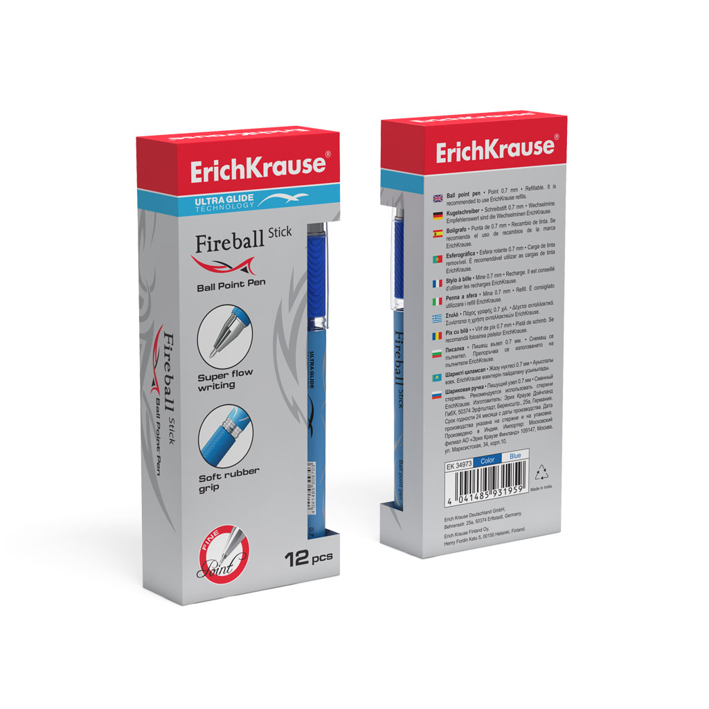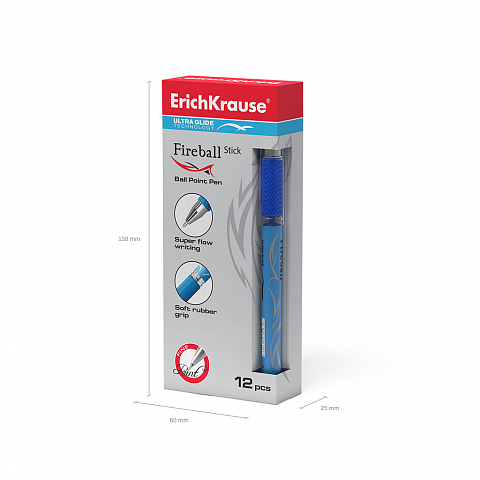 Ручка шариковая ErichKrause® Fire Ball Stick, Ultra Glide Technology, цвет чернил синий (в коробке по 12 шт.)