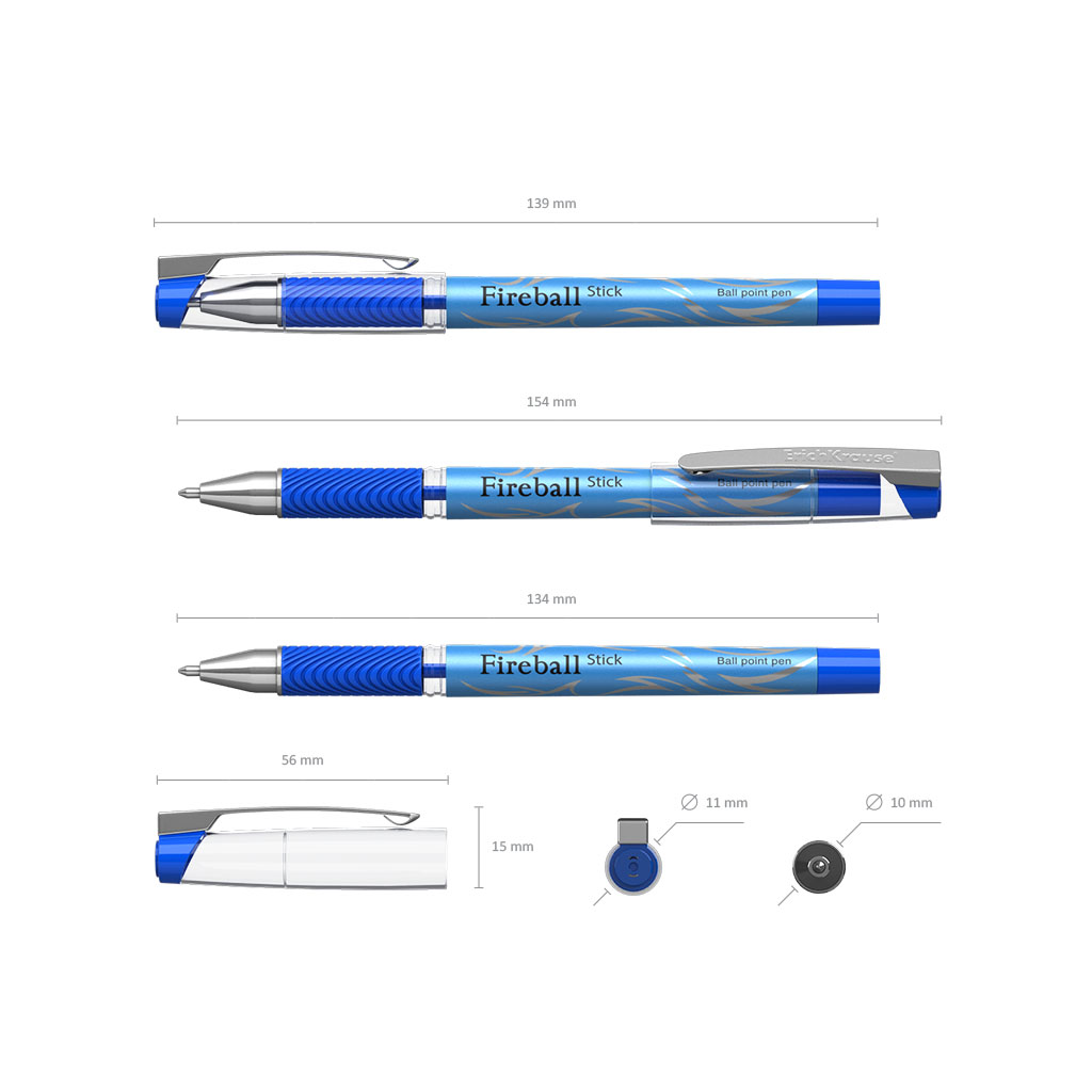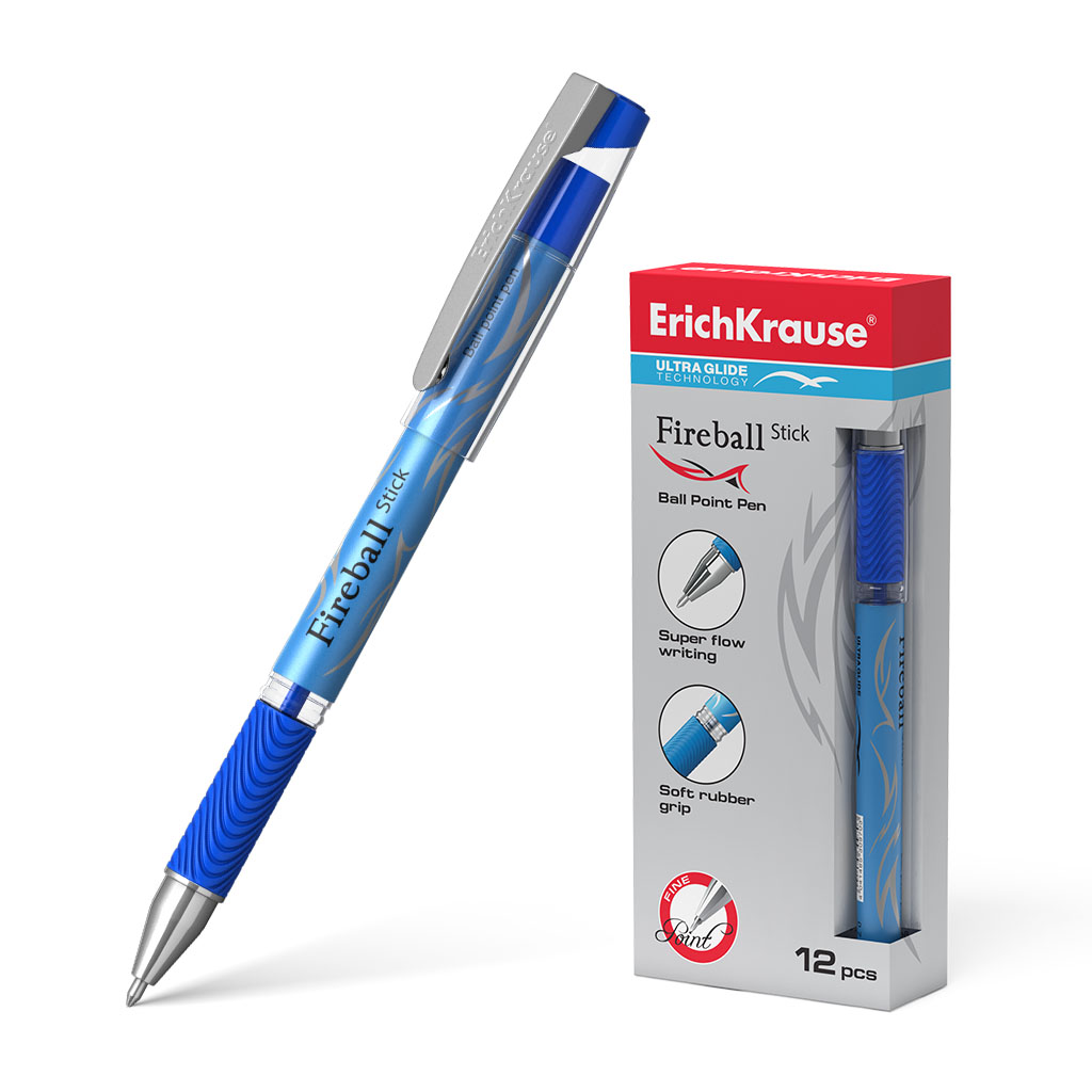Ручка шариковая ErichKrause® Fire Ball Stick, Ultra Glide Technology, цвет чернил синий (в коробке по 12 шт.) |