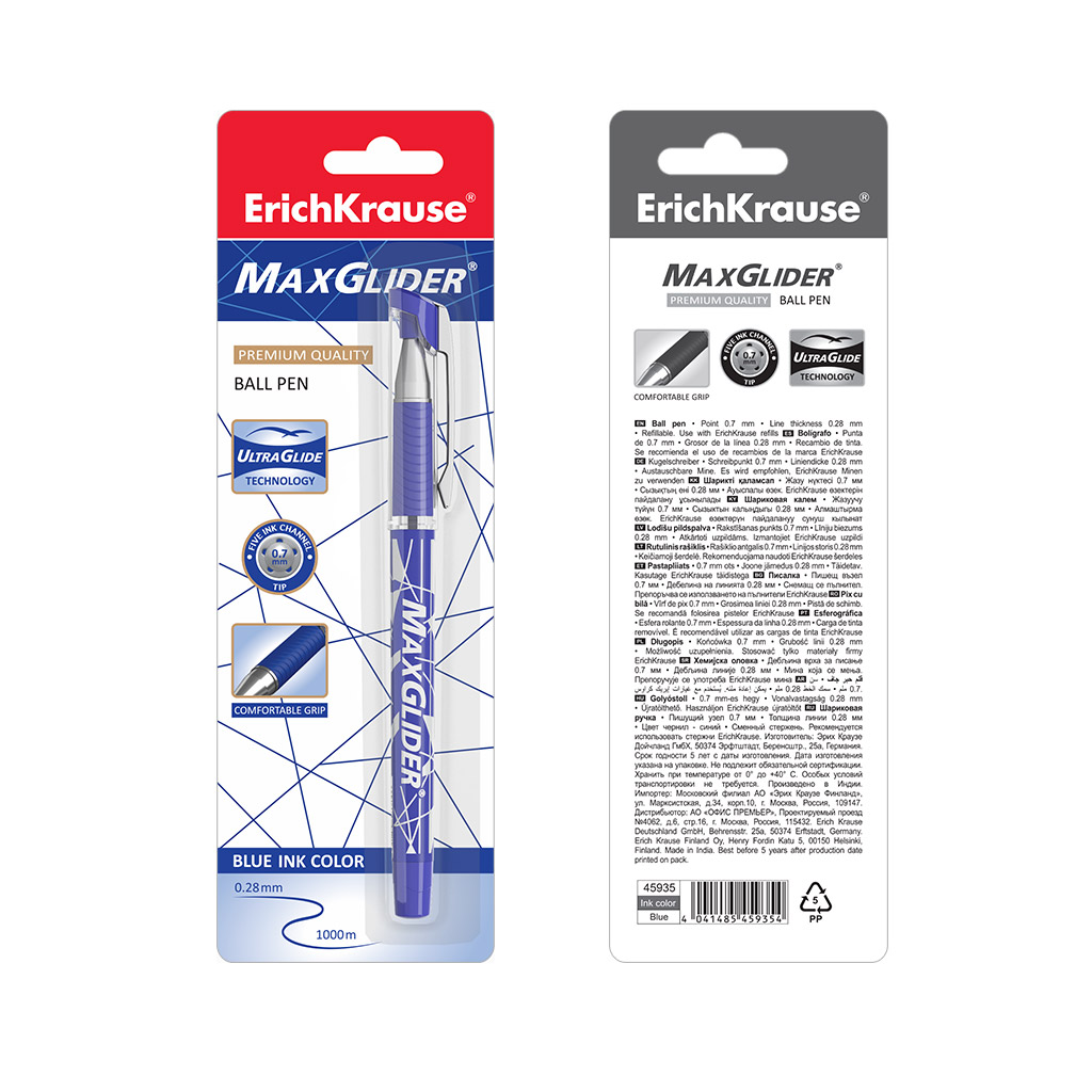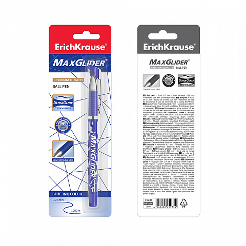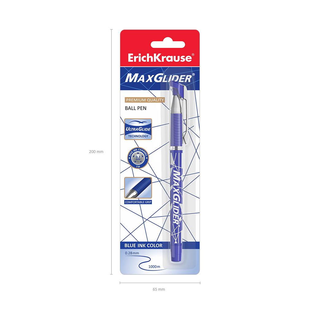 Ручка шариковая ErichKrause MaxGlider® Stick&Grip 0.7, Ultra Glide Technology, цвет чернил синий (в блистере по 1 шт.) |
