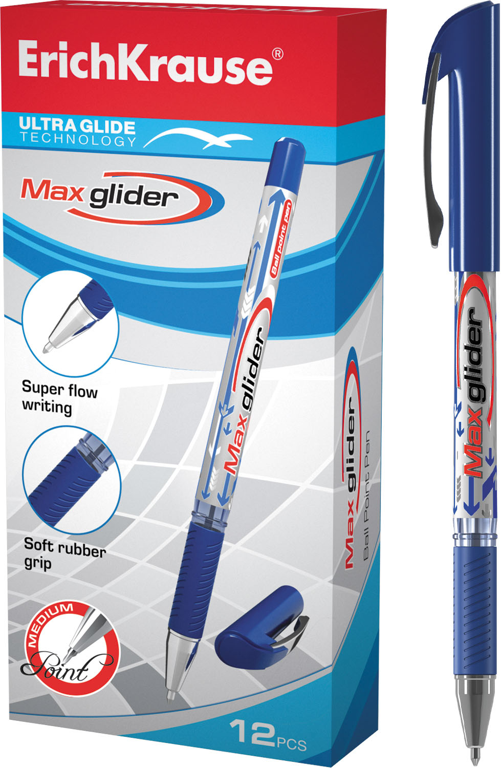 Ручка шариковая ErichKrause® MaxGlider®, Ultra Glide Technology, цвет чернил синий (в коробке по 12 шт.) |
