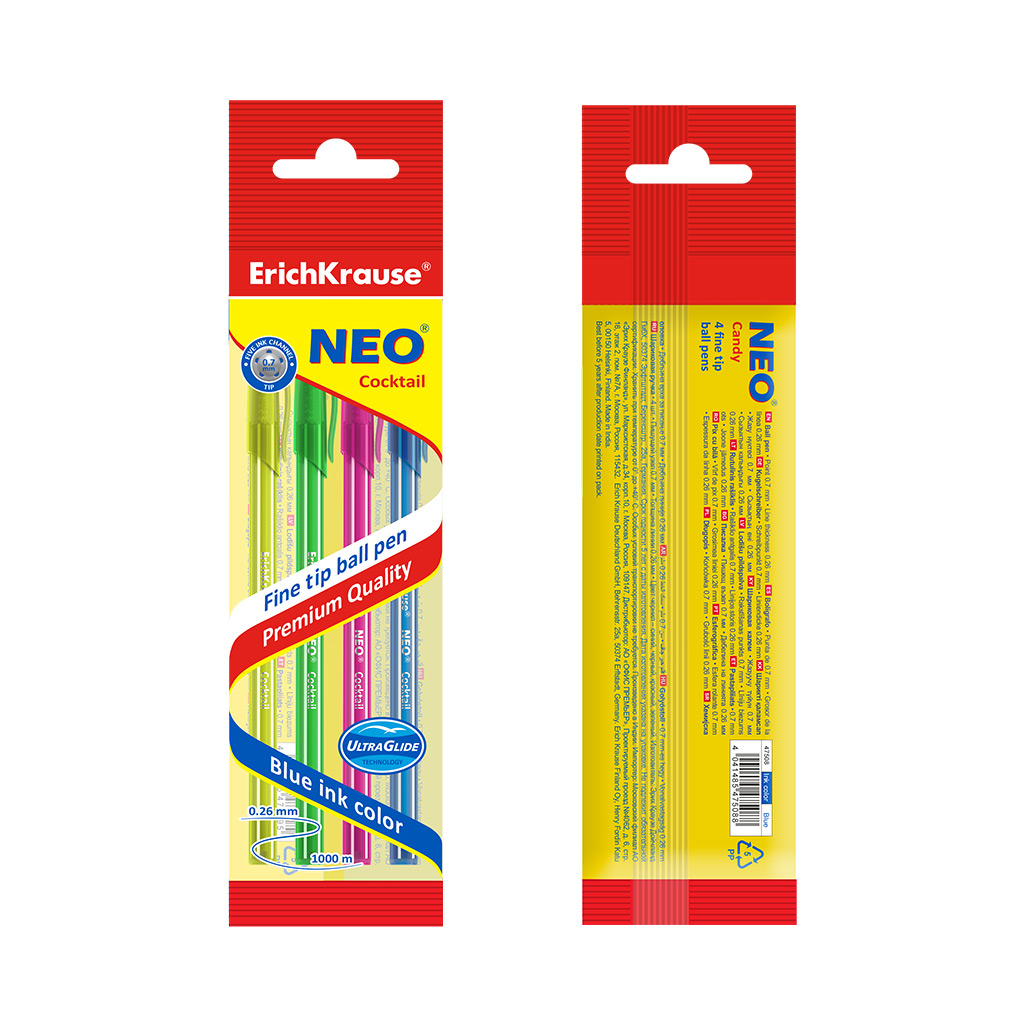 Набор из 4 ручек шариковых ErichKrause Neo® Stick Cocktail 0.7, Super Glide Technology, цвет чернил синий (в пакете)