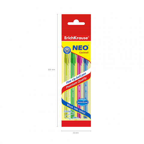 Набор из 4 ручек шариковых ErichKrause Neo® Stick Cocktail 0.7, Super Glide Technology, цвет чернил синий (в пакете) |
