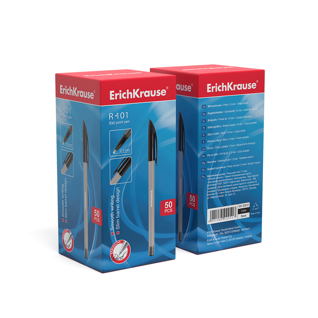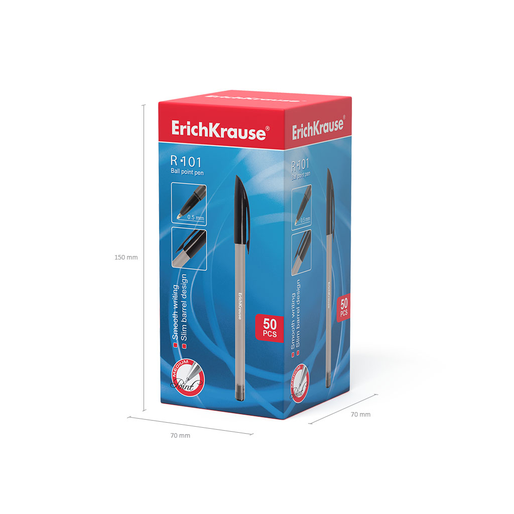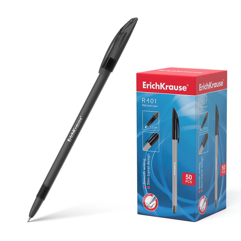 Ручка шариковая ErichKrause® R-101, цвет чернил черный (в коробке по 50 шт.) |