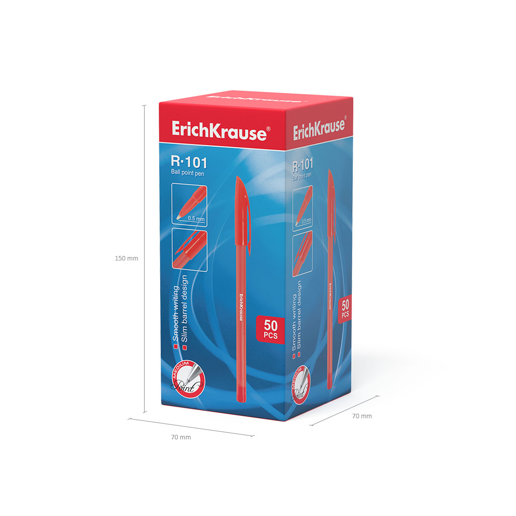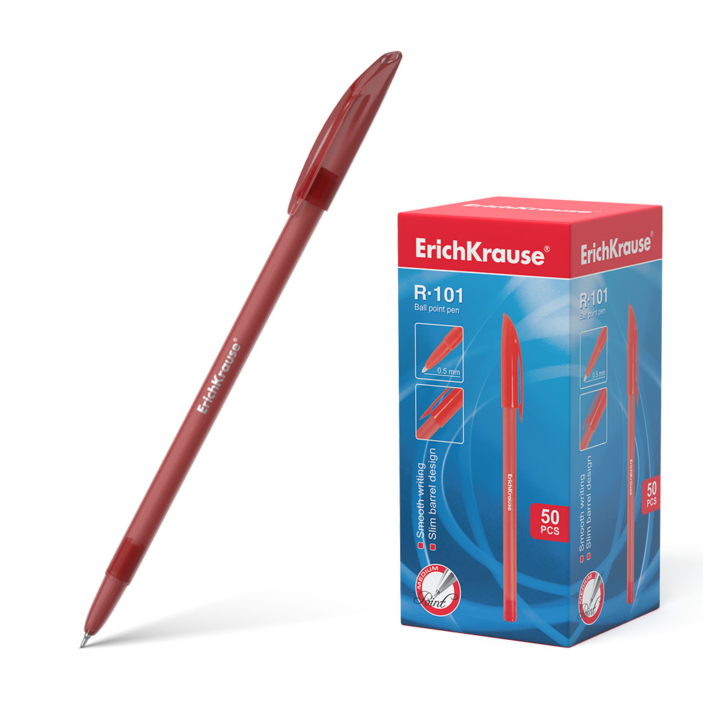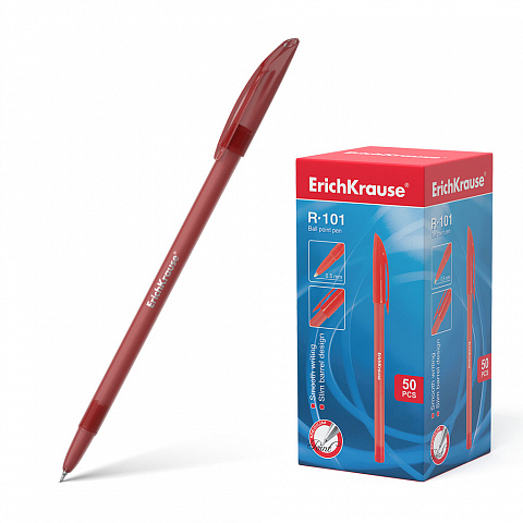 Ручка шариковая ErichKrause® R-101, цвет чернил красный (в коробке по 50 шт.) |