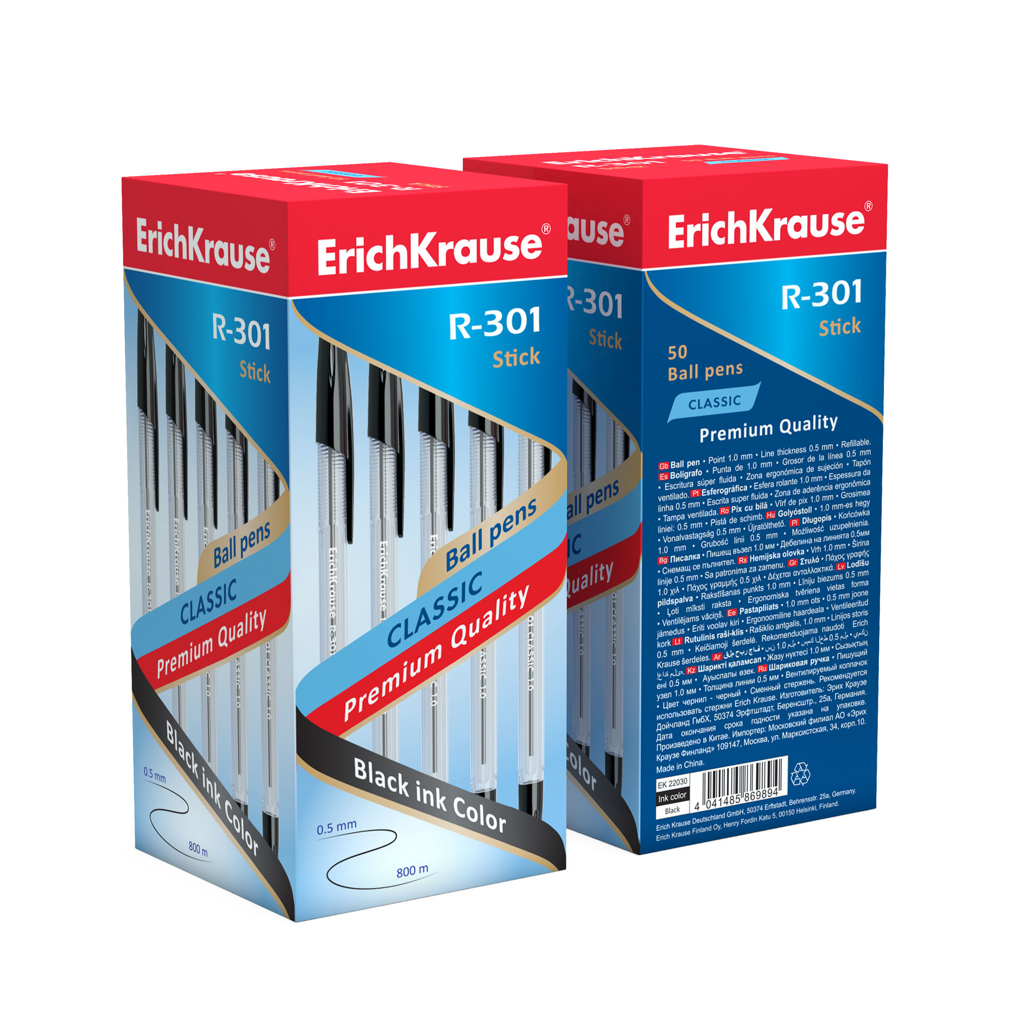 Ручка шариковая ErichKrause® R-301 Classic Stick 1.0, цвет чернил черный, без баркода (в коробке по 50 шт.)