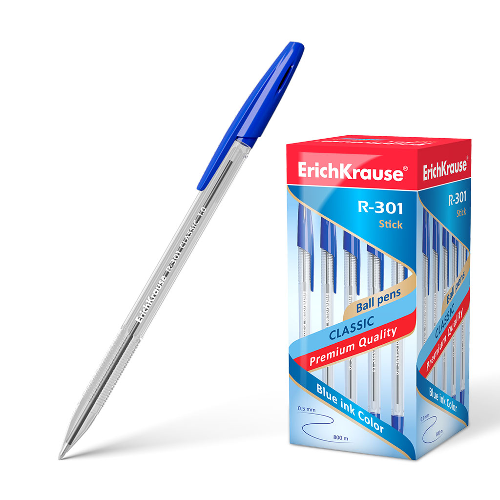 Ручка шариковая ErichKrause® R-301 Classic Stick 1.0, цвет чернил синий, без баркода (в коробке по 50 шт.)
