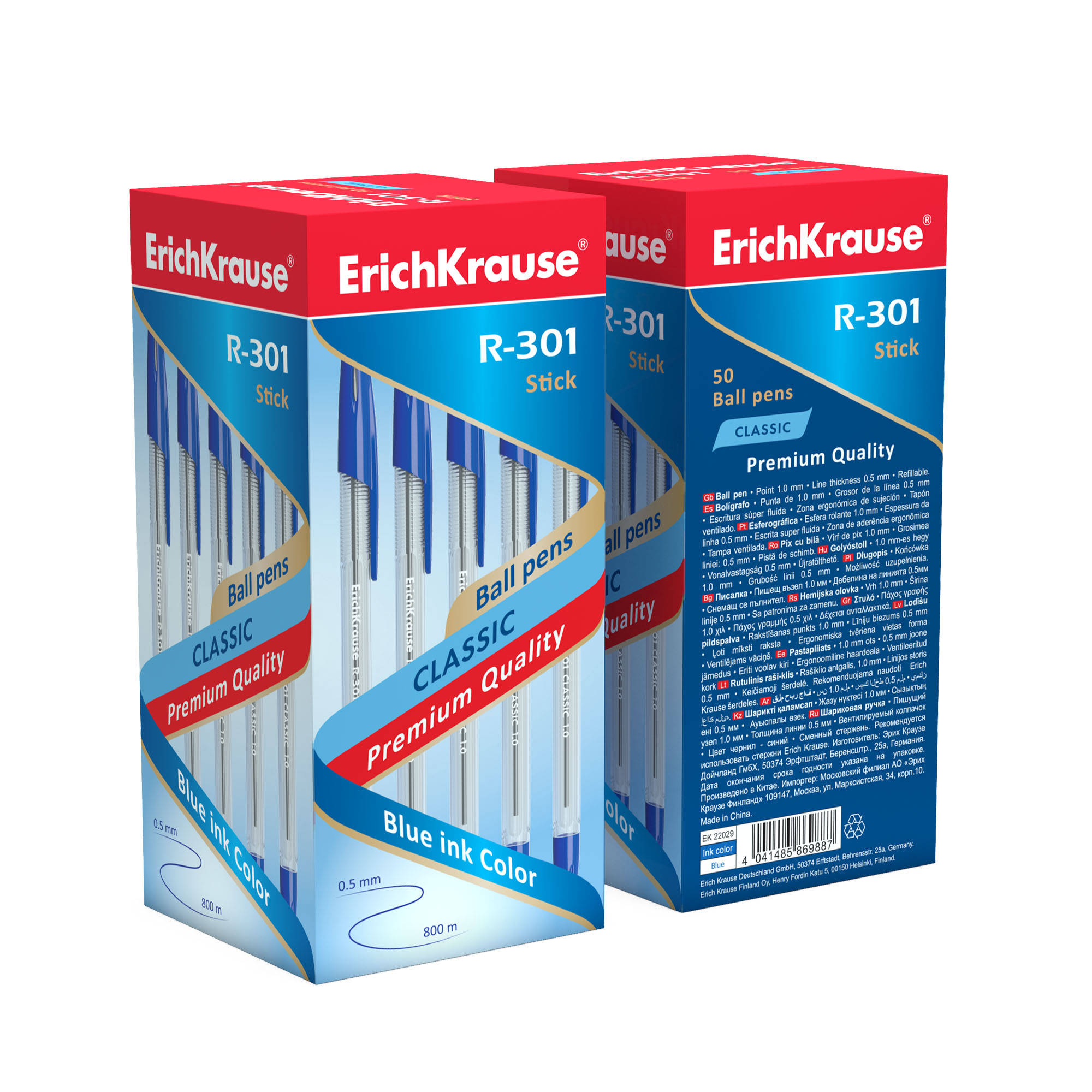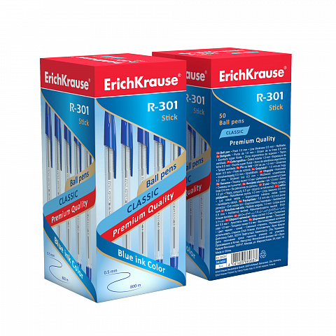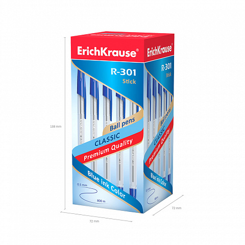 Ручка шариковая ErichKrause® R-301 Classic Stick 1.0, цвет чернил синий, без баркода (в коробке по 50 шт.) |