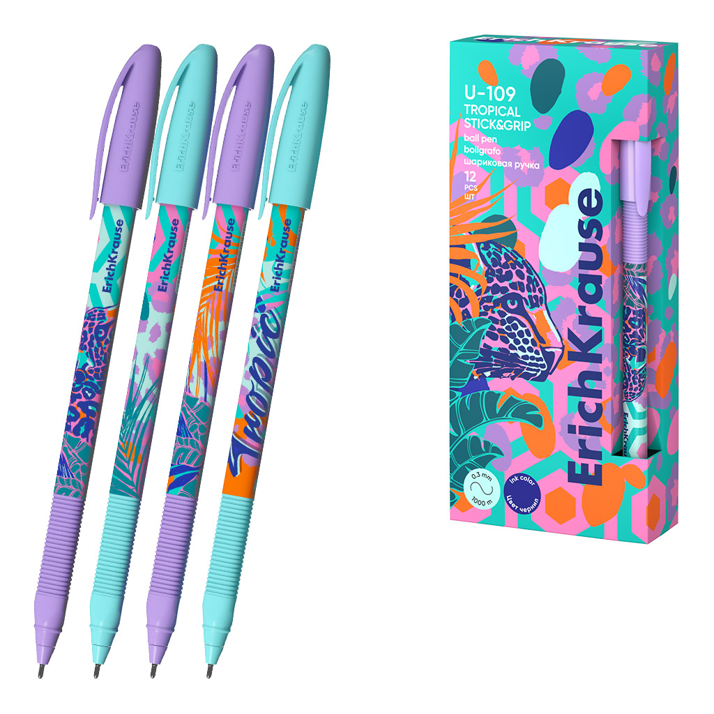 Ручка шариковая ErichKrause U-109 Stick&Grip Tropical 1.0, Ultra Glide Technology, цвет чернил синий (в коробке по 12 шт.) |