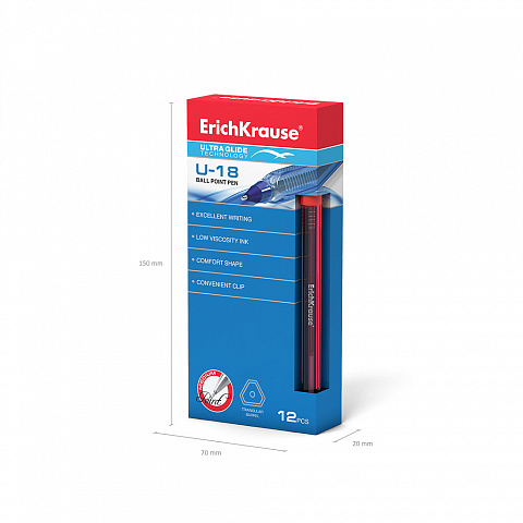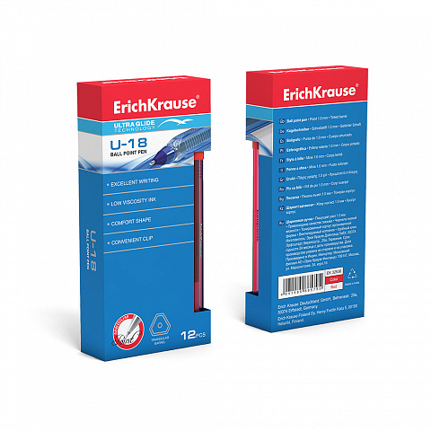 Ручка шариковая ErichKrause® U-18, Ultra Glide Technology, цвет чернил красный (в коробке по 12 шт.) |