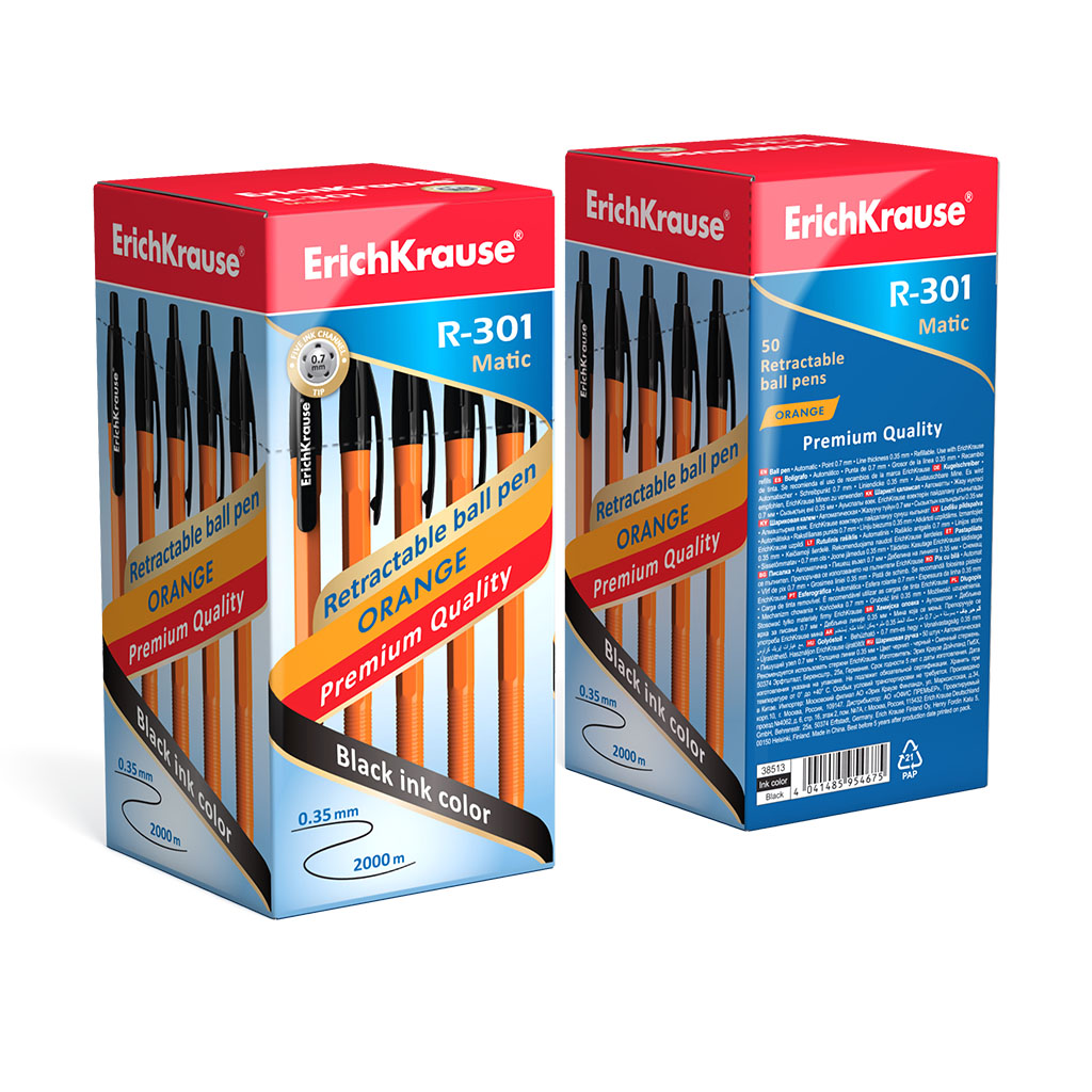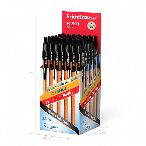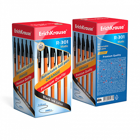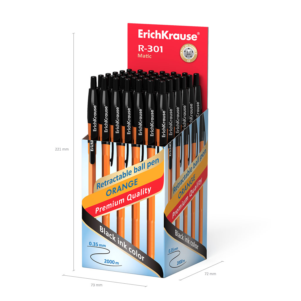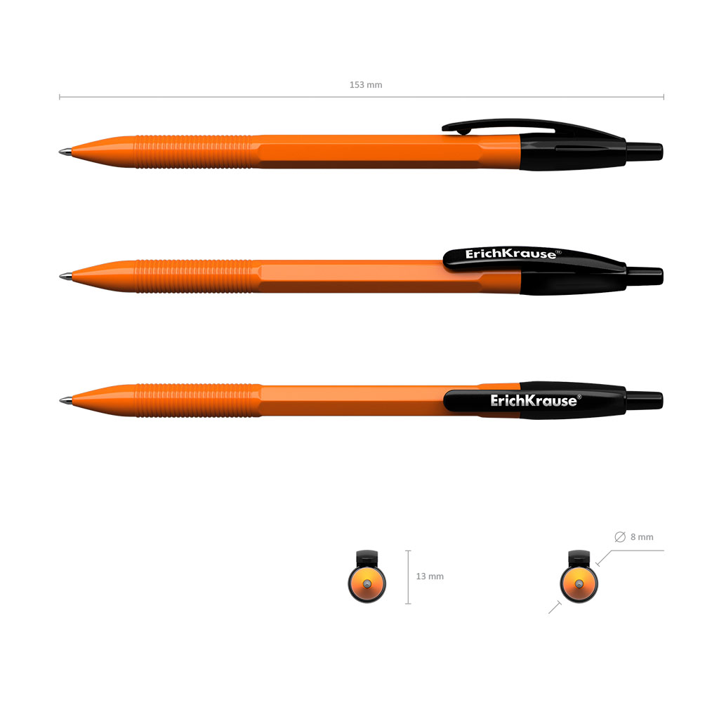 Ручка шариковая автоматическая ErichKrause R-301 Matic Orange 0.7, цвет чернил черный (в коробке по 50 шт.) |