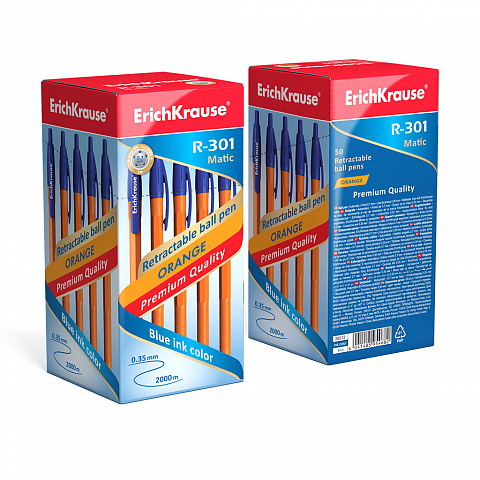 Ручка шариковая автоматическая ErichKrause R-301 Matic Orange 0.7, цвет чернил синий (в коробке по 50 шт.) |