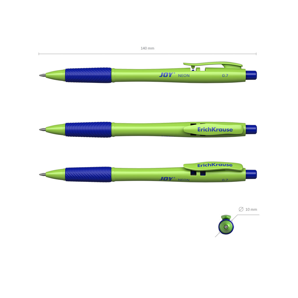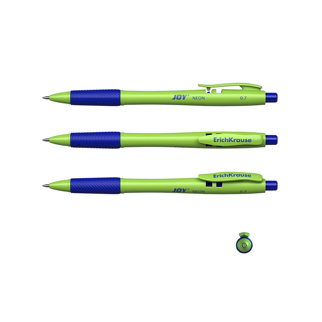 Ручка шариковая автоматическая ErichKrause JOY® Matic&Grip Neon 0.7, Super Glide Technology, цвет чернил синий (в коробке по 50 шт.) |