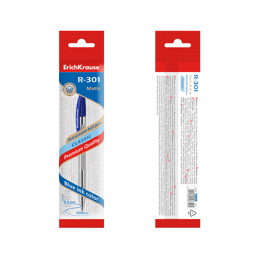 Ручка шариковая автоматическая ErichKrause R-301 Matic Classic 1.0, цвет чернил синий (в пакете)