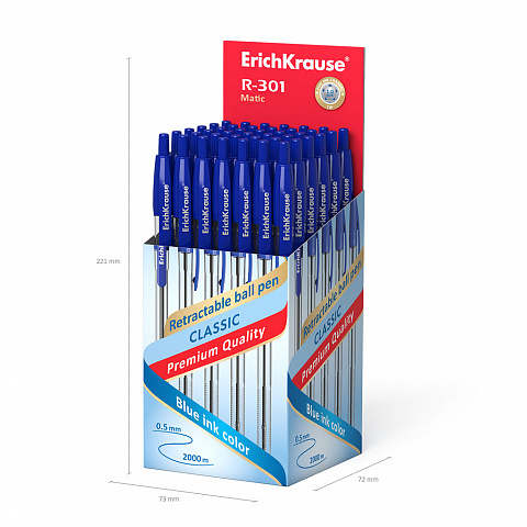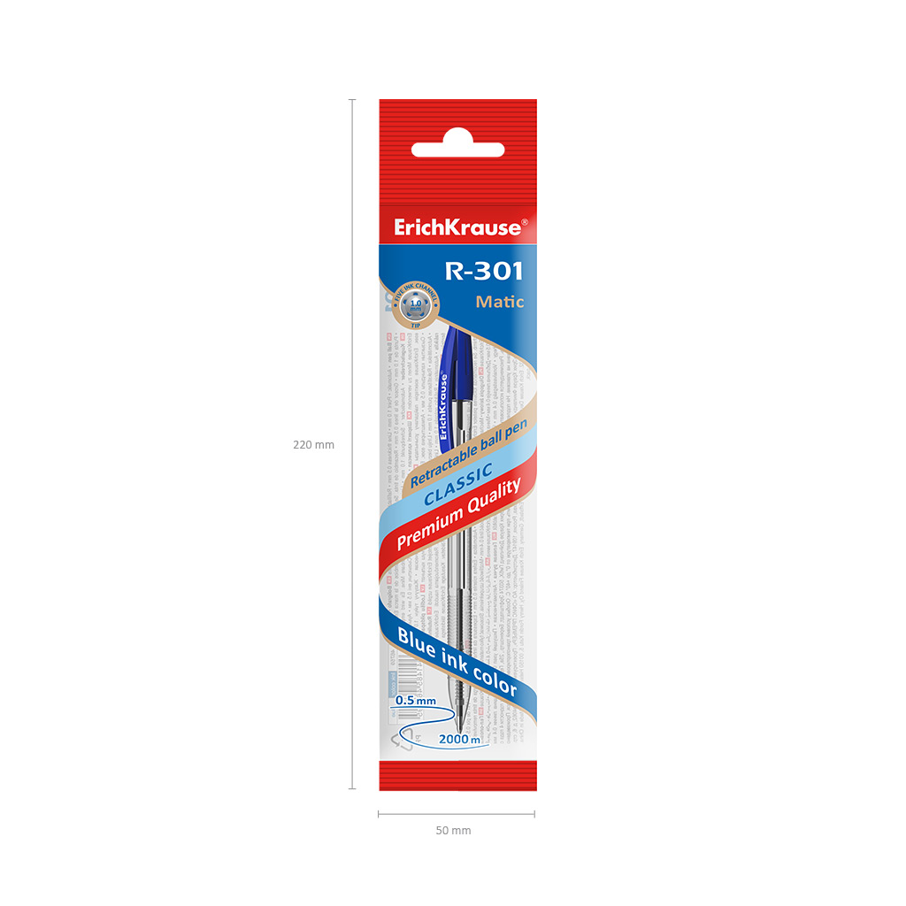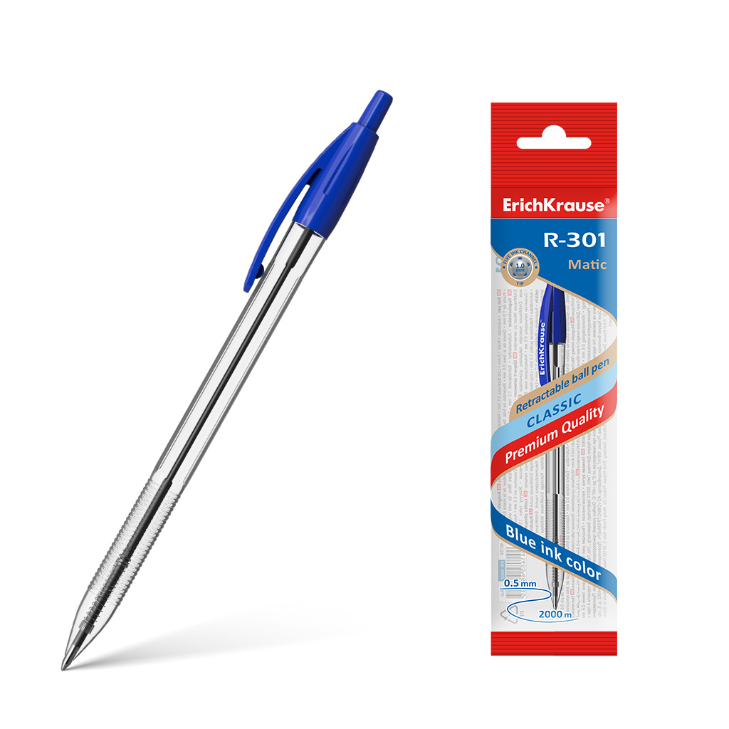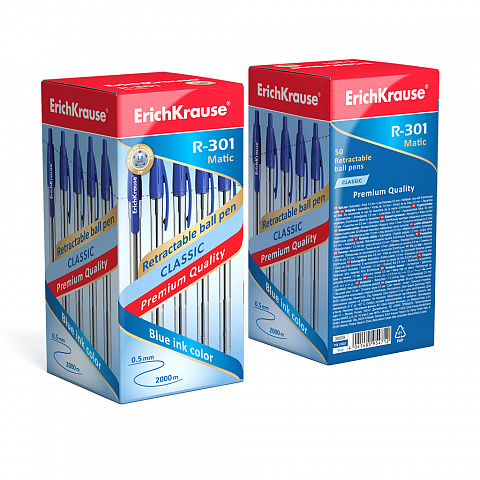 Ручка шариковая автоматическая ErichKrause R-301 Matic Classic 1.0, цвет чернил синий (в коробке по 50 шт.) |