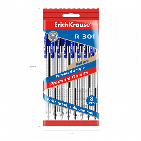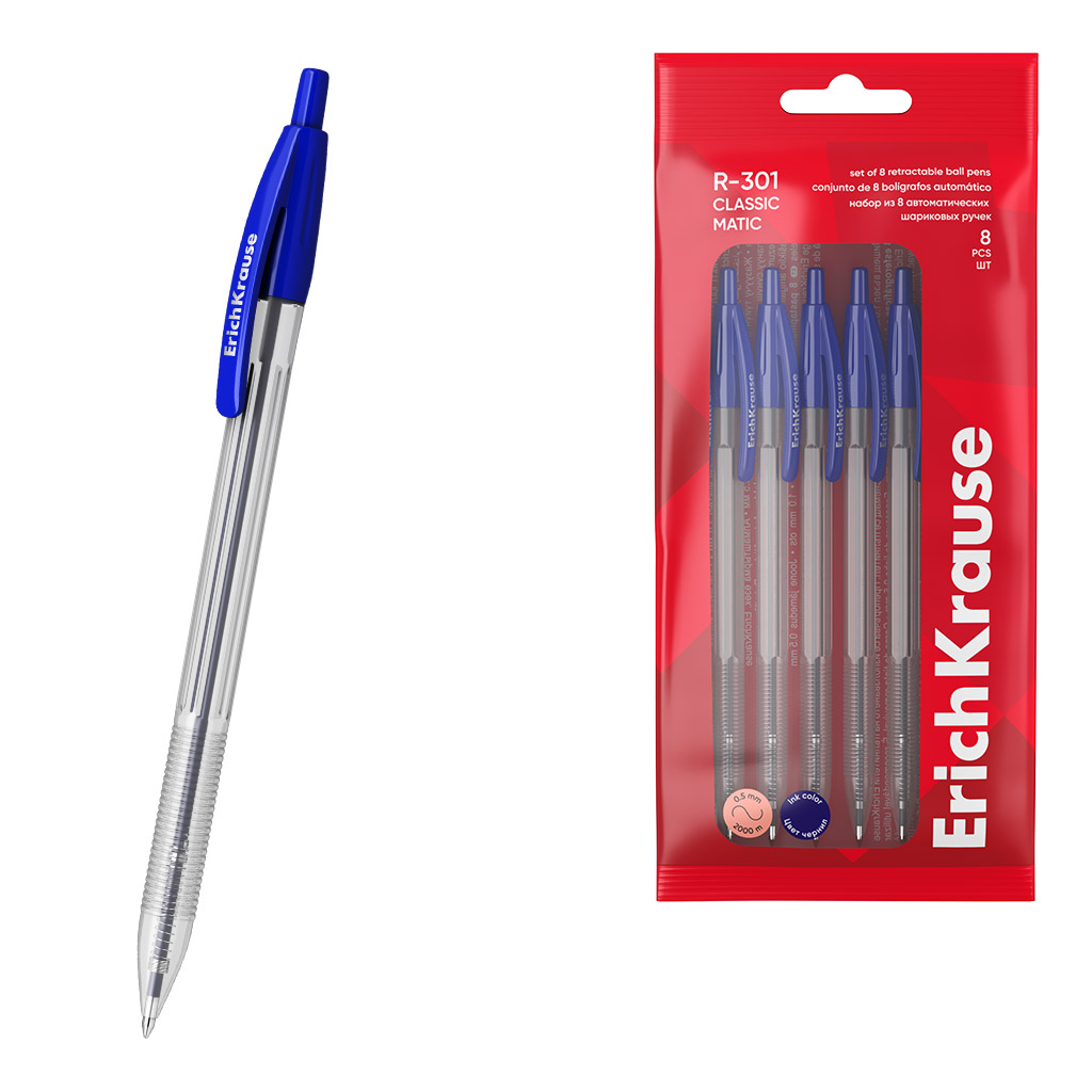 Набор из 8 ручек шариковых автоматических ErichKrause R-301 Matic Classic 1.0, цвет чернил синий (в пакете) |