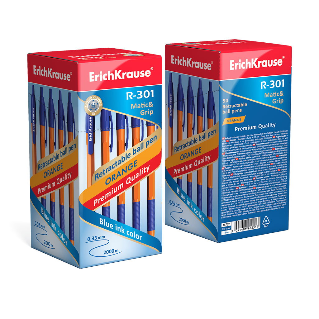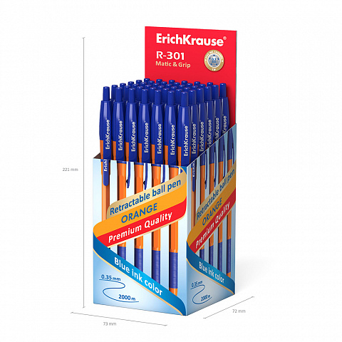 Ручка шариковая автоматическая ErichKrause R-301 Matic&Grip Orange 0.7, цвет чернил синий (в коробке по 50 шт.) |
