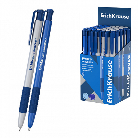 Ручка шариковая автоматическая ErichKrause Switch Matic&Grip 0.7, цвет чернил синий (в коробке по 50 шт.) |