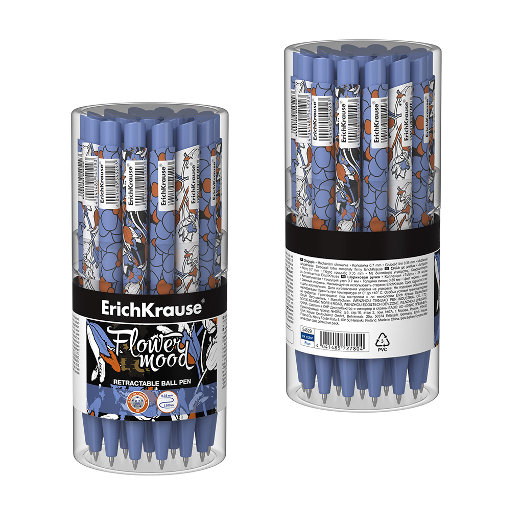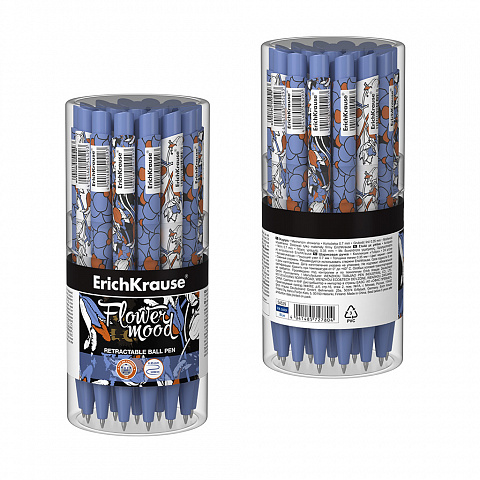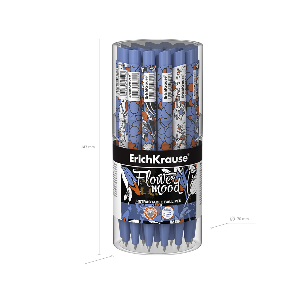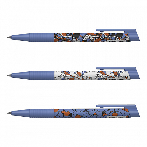 Ручка шариковая автоматическая ErichKrause Tulips Matic&Grip 0.7, цвет чернил синий (в тубусе по 24 шт.) |
