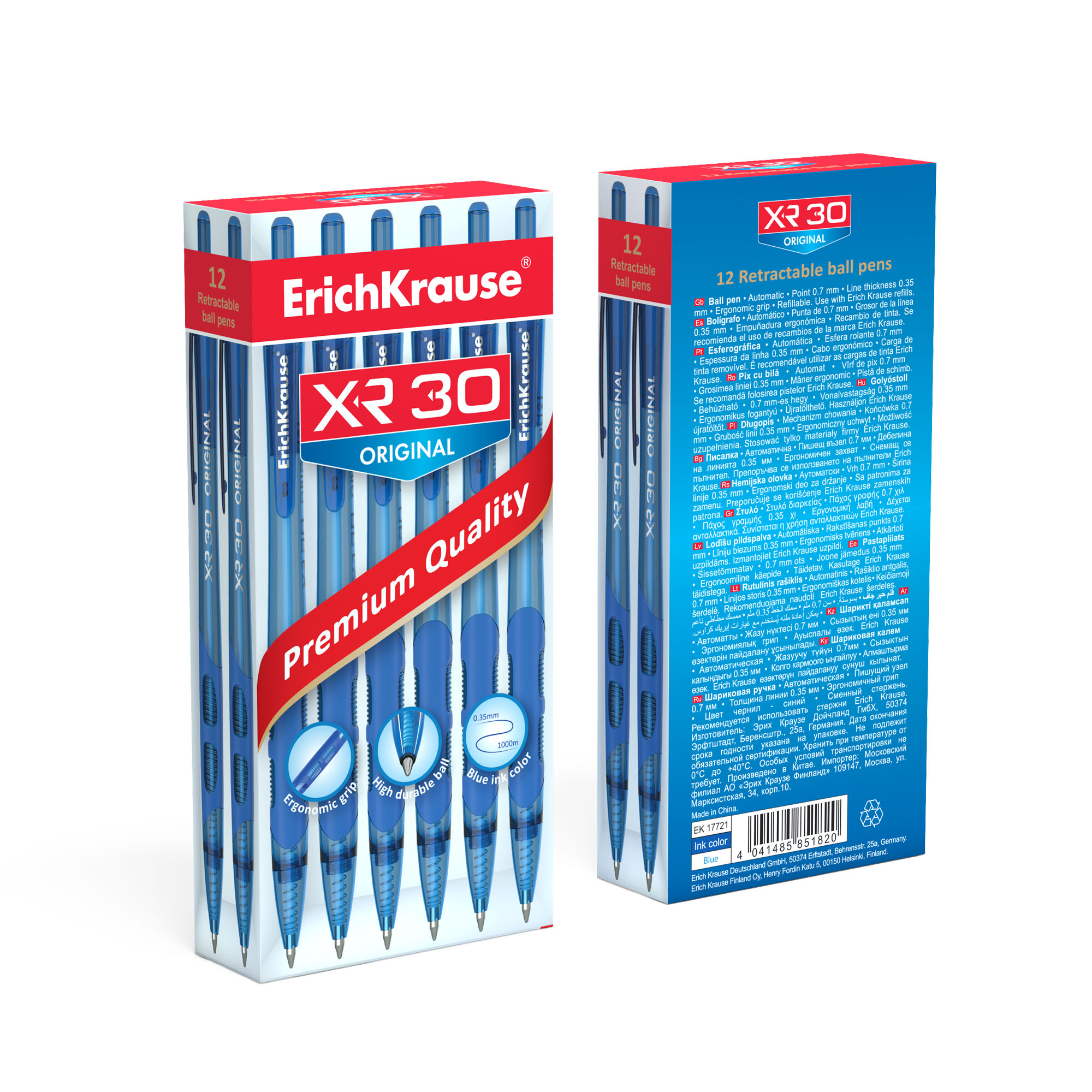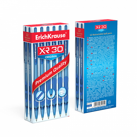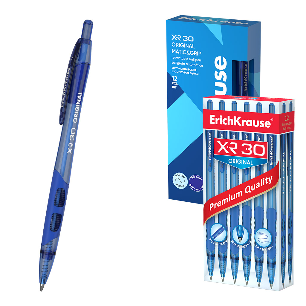 Ручка шариковая автоматическая ErichKrause XR-30 Matic&Grip Original 0.7, цвет чернил синий (в коробке по 12 шт.) |