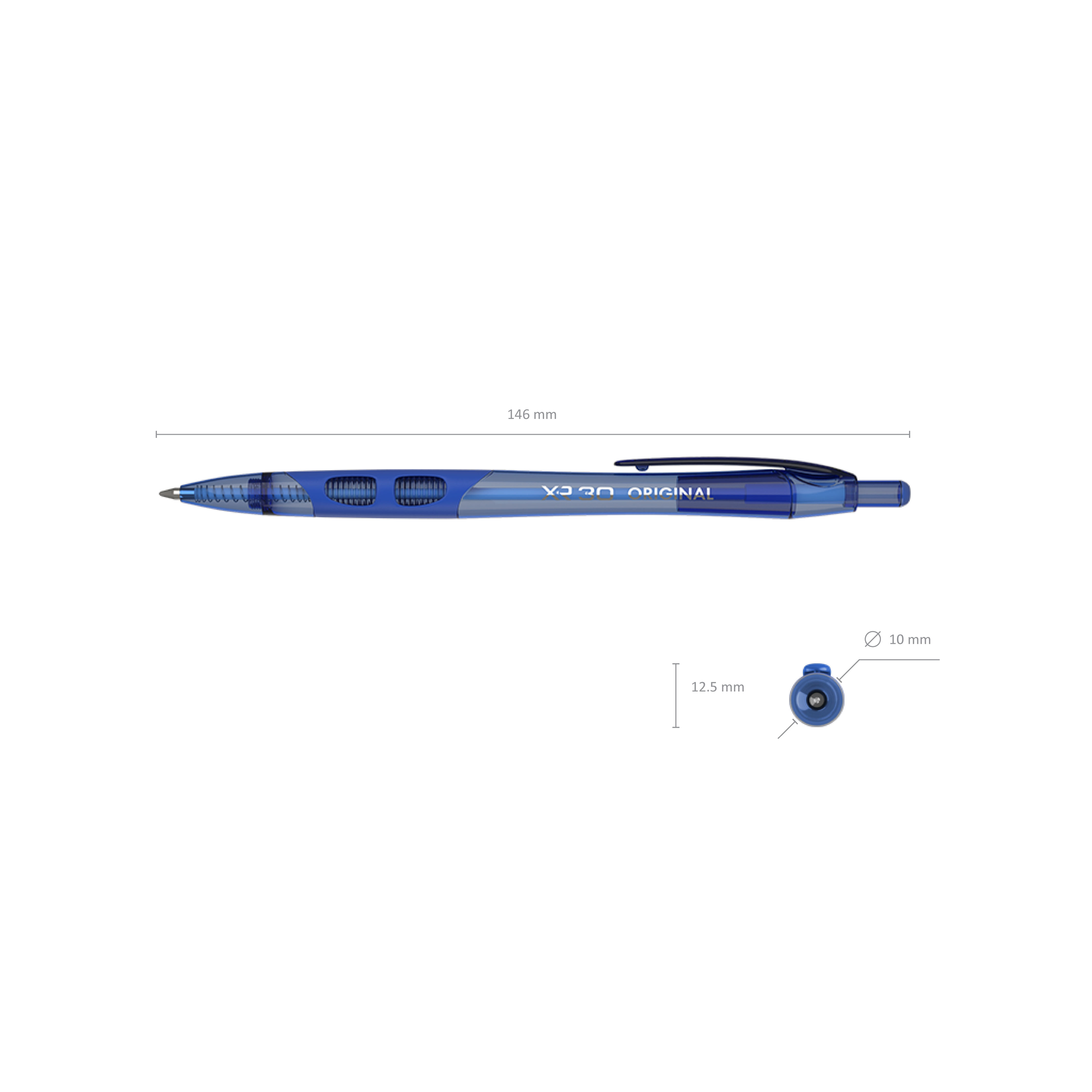 Автоматическая шариковая ручка Matic&Grip со стандартным типом пишущего узла и заменяемым стержнем. Ручка имеет круглый полупрозрачный корпус с эргономичной комбинированной грип-зоной из резины и пластика. Цвет корпуса, грип-зоны и клипа соответствует цвету чернил. 5-канальный пишущий узел с диаметром шарика 0.7 мм в сочетании с быстросохнущими чернилами обеспечивает мягкое и быстрое письмо. Длина непрерывной линии составляет 1000 м при толщине 0.35 мм, что является высоким показателем в своей категории. Модель XR-30 Matic&Grip Original 0.7 стала одним из бестселлеров в ассортименте автоматических ручек ErichKrause. |