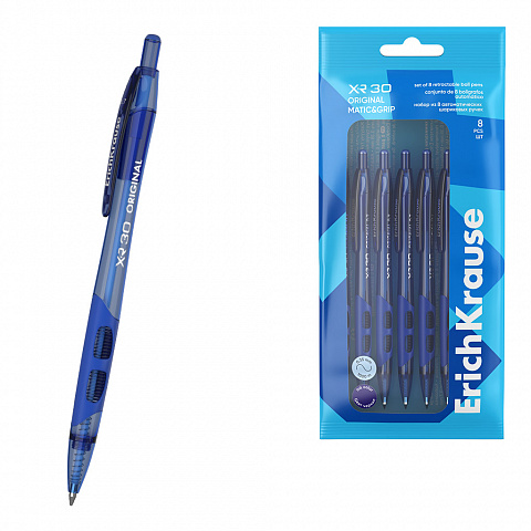 Набор из 8 ручек шариковых автоматических ErichKrause XR-30 Matic&Grip Original 0.7, цвет чернил синий (в пакете) |