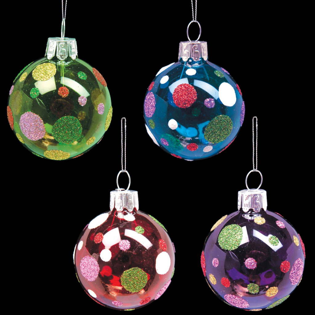 В набор входят четыре разноцветных стеклянных шарика диаметром 5 см. Такие изделия гармонично смотрятся на небольшой елочке. Упаковка - коробка. |