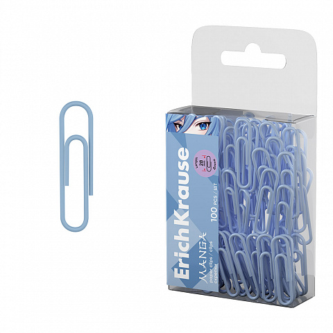 Скрепки металлические с виниловым покрытием ErichKrause Manga, 28мм, Pale Blue (в пэт-боксе по 100 шт.)