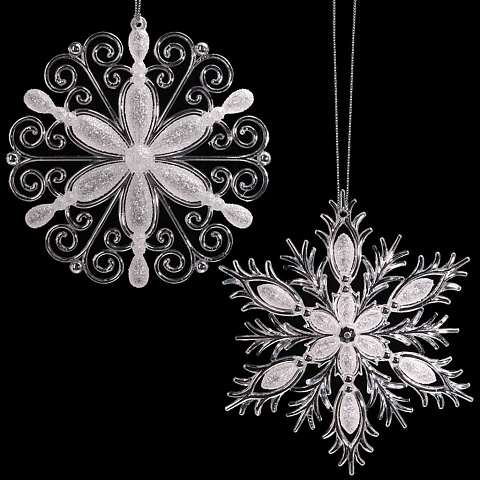 Снежинка имеет очень красивую серебряную окантовку и "сахарный" акцент в центральной части. Товар поставляется в нескольких вариантах цвета/дизайна без возможности выбора. Упаковка - полибэг. |