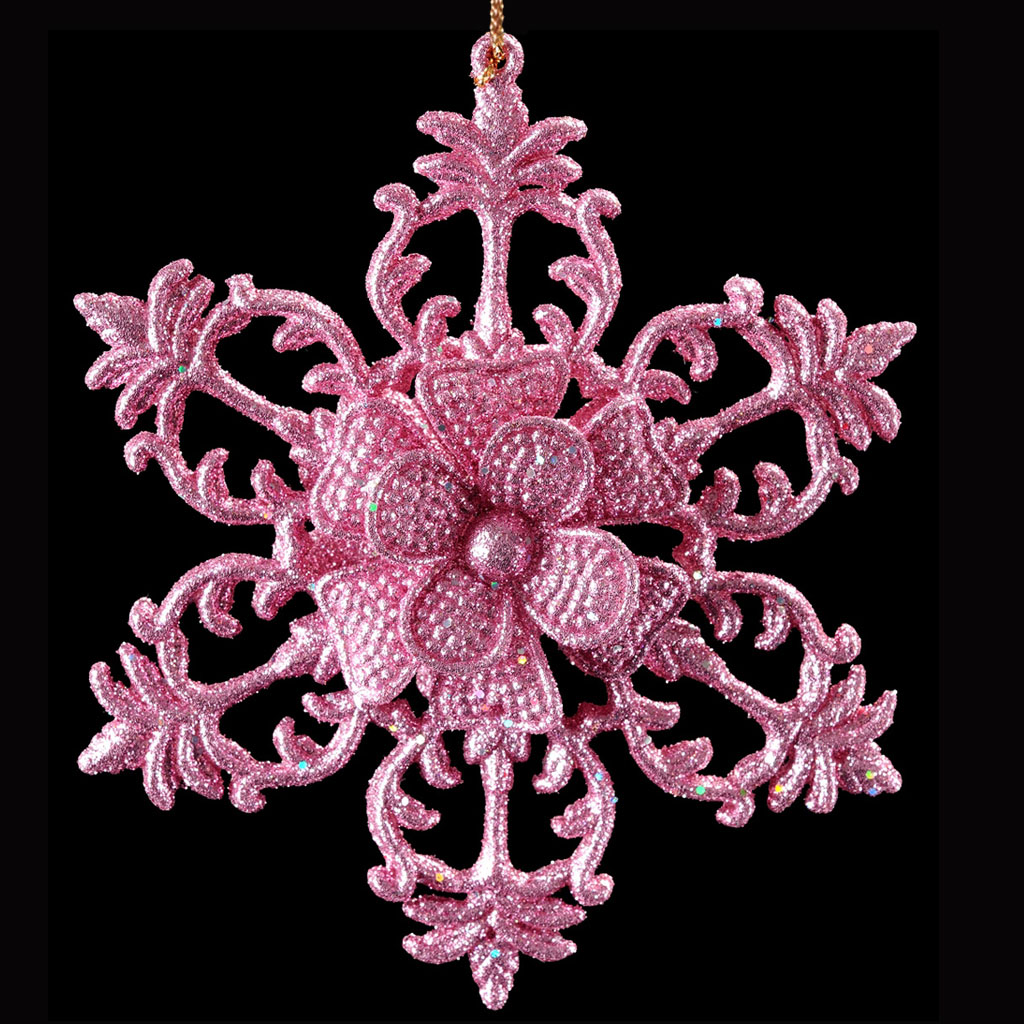 Снежинка очаровывает тонкой рельефной конструкцией и нежным розовым цветом. Сверкающие блестки добавляют изделию очарования. Упаковка - полибэг. |