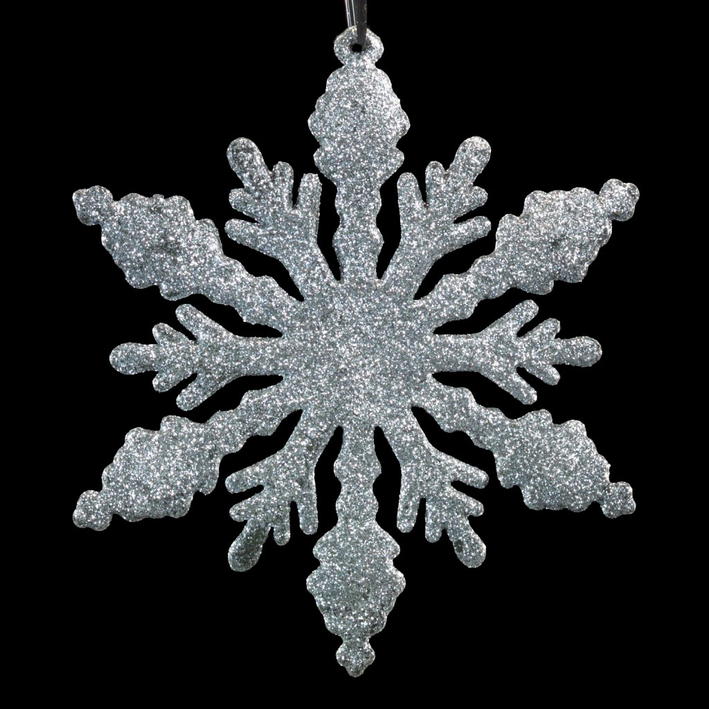 Набор состоит из трех плоских снежинок, полностью покрытых серебряными блестками. Диаметр каждой снежинки 13 см, поэтому подходят для декорирования больших елок или оформления интерьера. Упаковка - высококачественный pvc-box. |