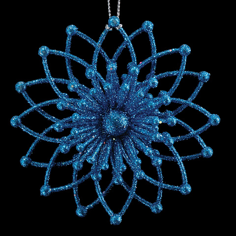 Снежинка лазурного цвета привлекает внимание своей объемной кострукцией. Отличное украшение для небольших елок. Яркий цвет дополняют красочные блестки, завораживающие своим сиянием. Упаковка - полибэг. |
