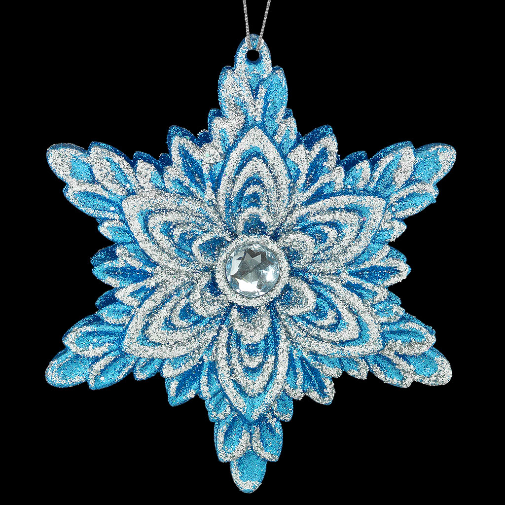 Украшение в виде звезды привлекает внимание объемом и тонким рельефом. Насыщенный голубой цвет красиво подчеркивают серебряные блестки. Сердцевина украшения декорирована большой стразой. Техническая упаковка - полибэг, только для безопасной транспортировки и хранения. |