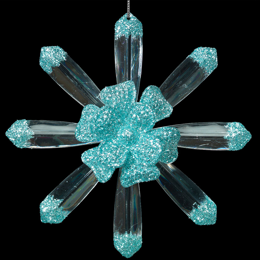 Оригинальность снежинке придают прозрачные лучи, выходящие из ярко выраженной цветочной сердцевины. Мелкие блестки бирюзового цвета завершают торжественный образ. Техническая упаковка - полибэг, только для безопасной транспортировки и хранения. |