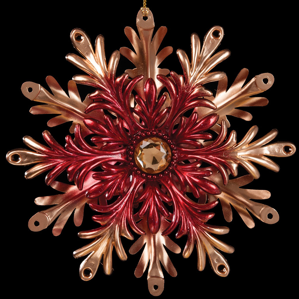 Снежинка имеет красную сердцевину, плавно переходящую в золотые лучи. Центр украшения венчает крупная страза. Техническая упаковка - полибэг, только для безопасной транспортировки и хранения. |