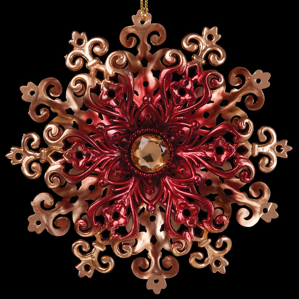 Снежинка имеет красную сердцевину, плавно переходящую в золотые лучи. Центр украшения венчает крупная страза. Техническая упаковка - полибэг, только для безопасной транспортировки и хранения. |