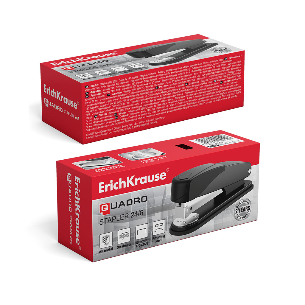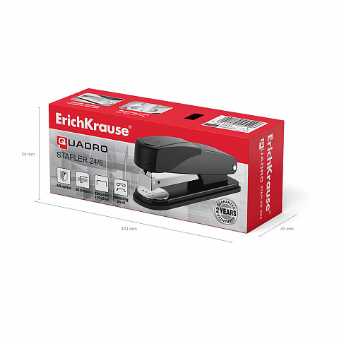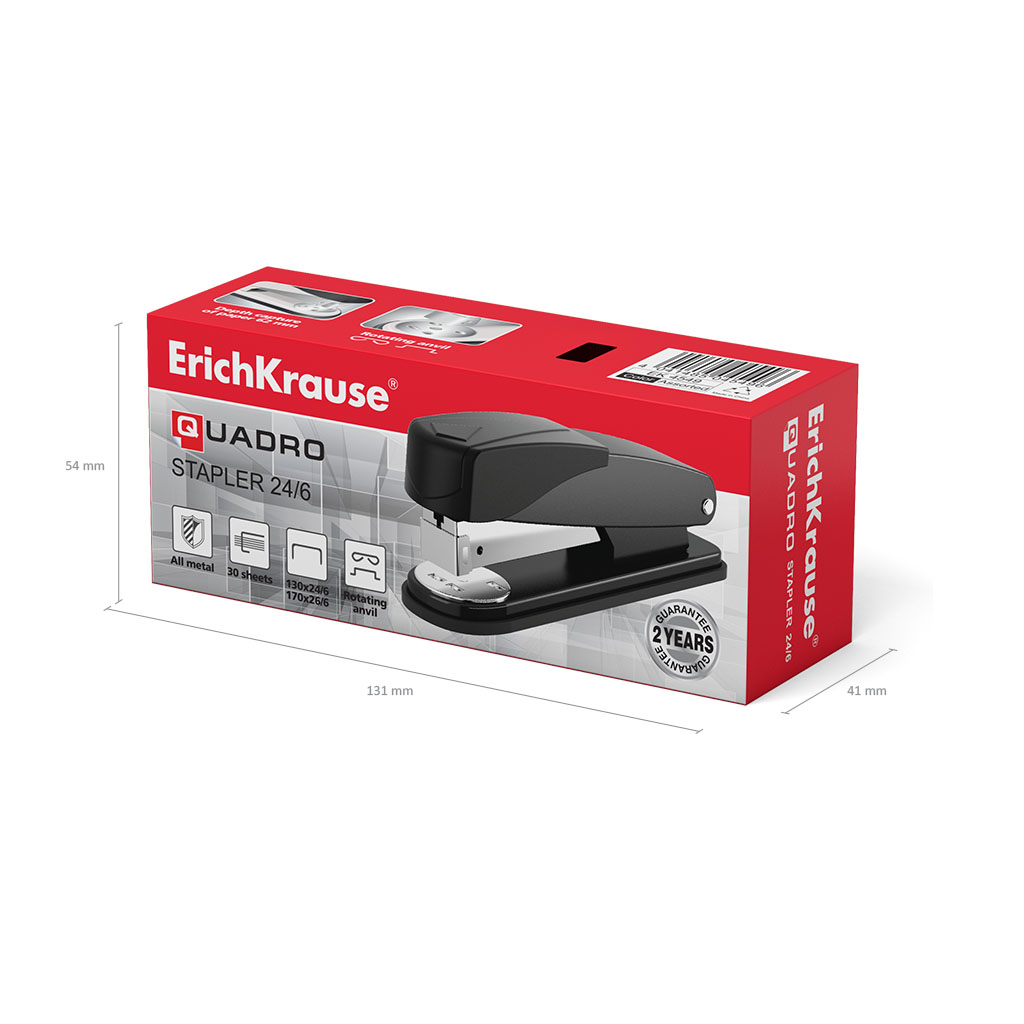 Степлер №24/6 Half-strip ErichKrause Quadro Classic до 30 листов, черный (в коробке по 1 шт.)