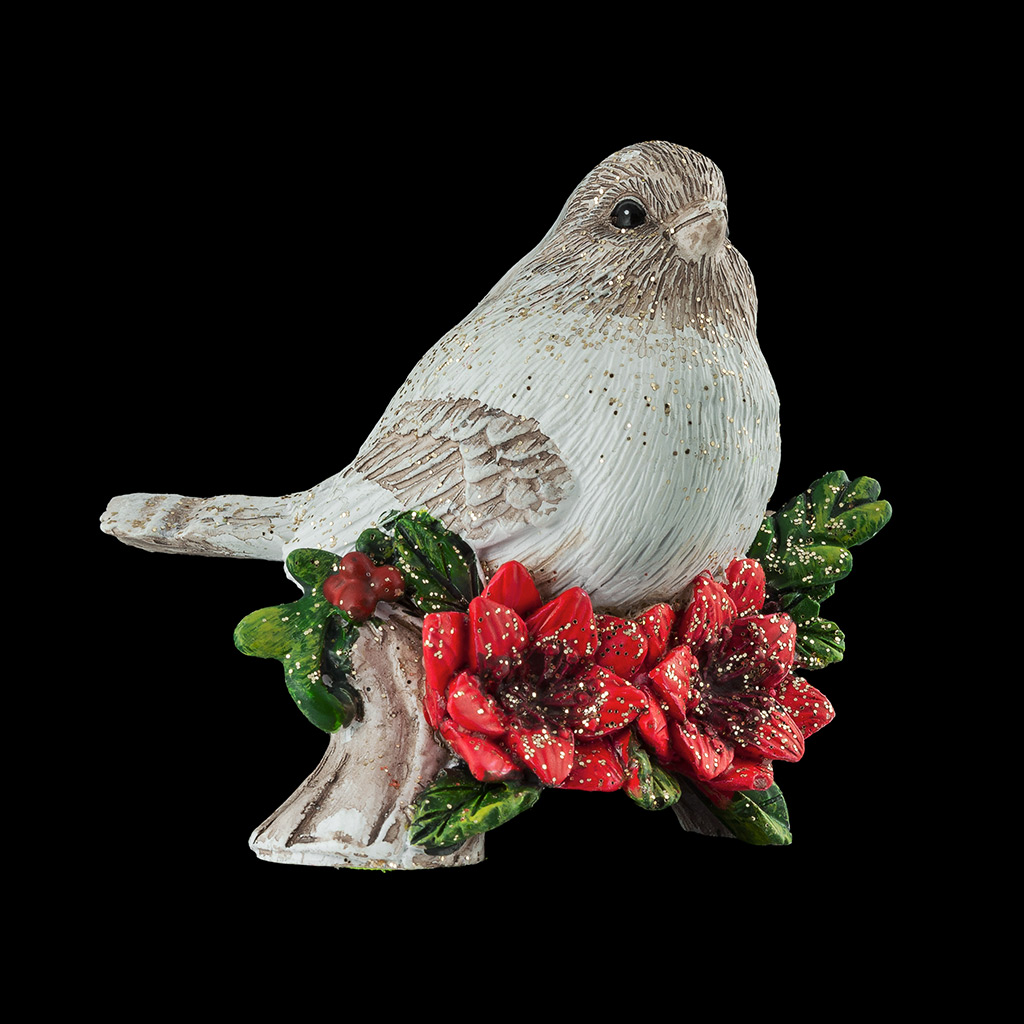 Птичка сидии в веночке, декорированном цветками пуансеттии. Изделие отличается компактным размером. Детали сувенира тонко прорисованы. Групповая упаковка предназначена только для безопасной транспортировки и хранения. |